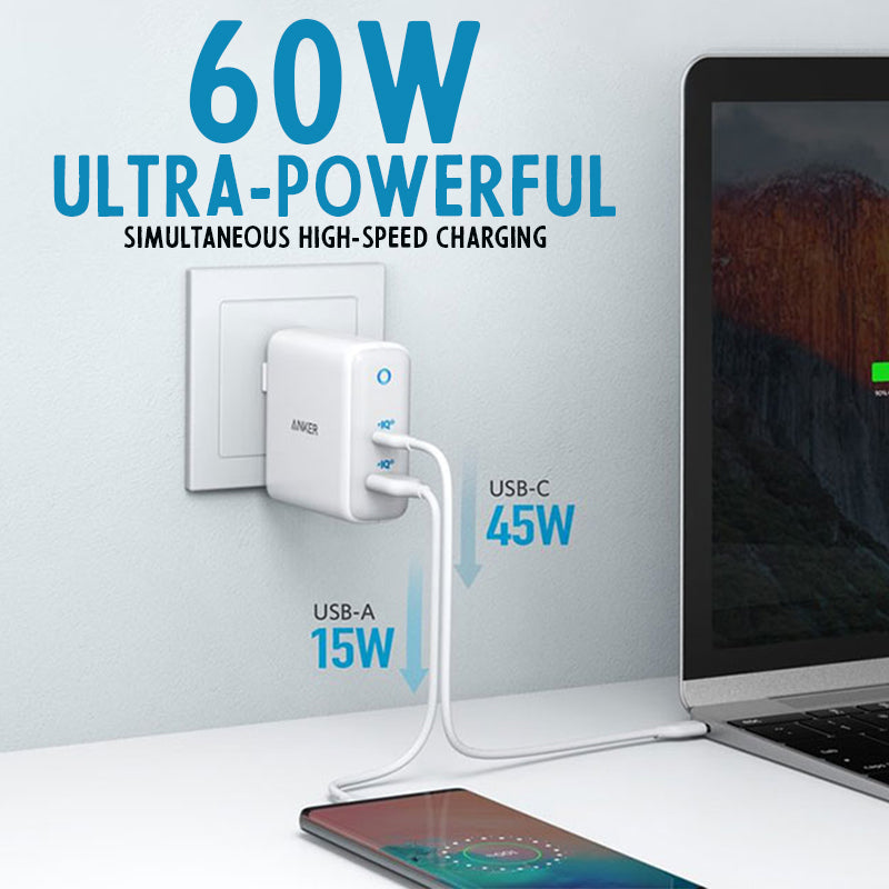 Anker PowerPort Atom III, 60W PIQ 3.0&GaN Tech USB C Charger, (2 Ports) Compact Type-C Charger (PIQ 2.0 USB-A Port), for USB-C Laptops, MacBook, iPad Pro, iPhone, Galaxy, Pixel and More – White