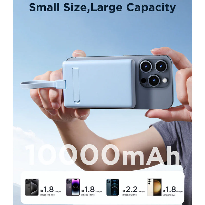 - 10000mAh large capacity, compact size, camera friendly