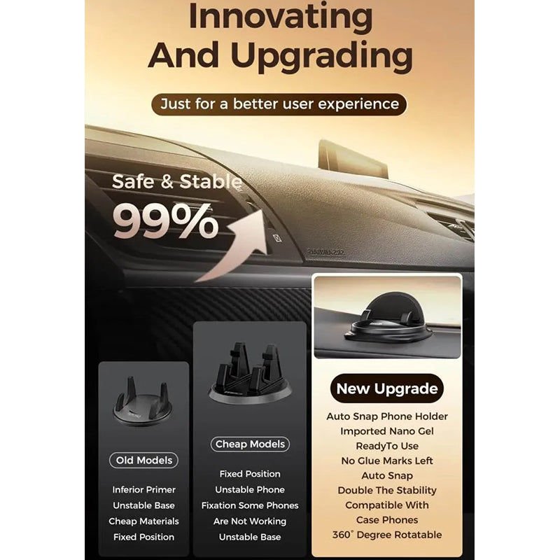- Super Powerful Suction Cup: Made of 3 layers of nano-gel pads, the bottom of the suction cup can be firmly fixed on your dashboard. Through laboratory testing, it can withstand extreme weather between -4°F to 194°F, so you don't have to worry about it will melt or leaving any marks on your dashboard.