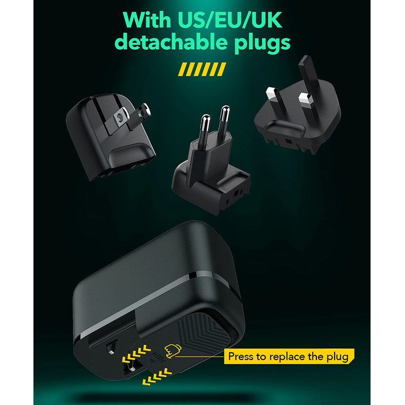 - Replaceable Plug, US/EU/UK for option