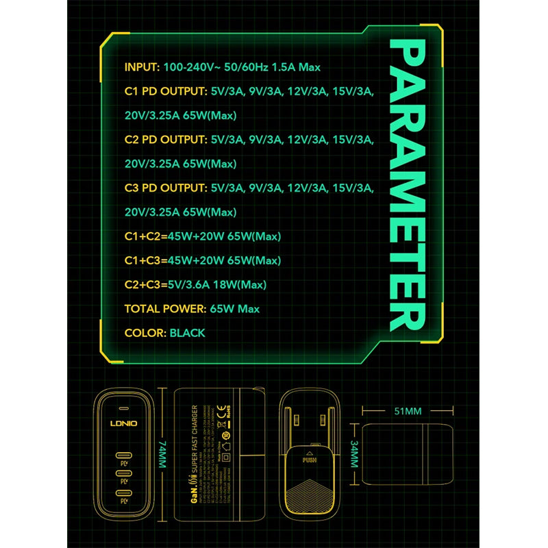 LDNIO Q367 65W GaN Supper Fast Charger