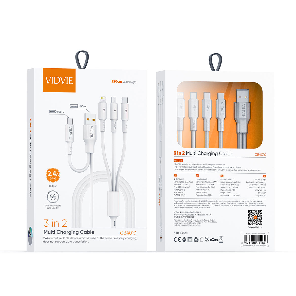 VIDVI CB4010 Professional 3X2 Multi-Charge Cable